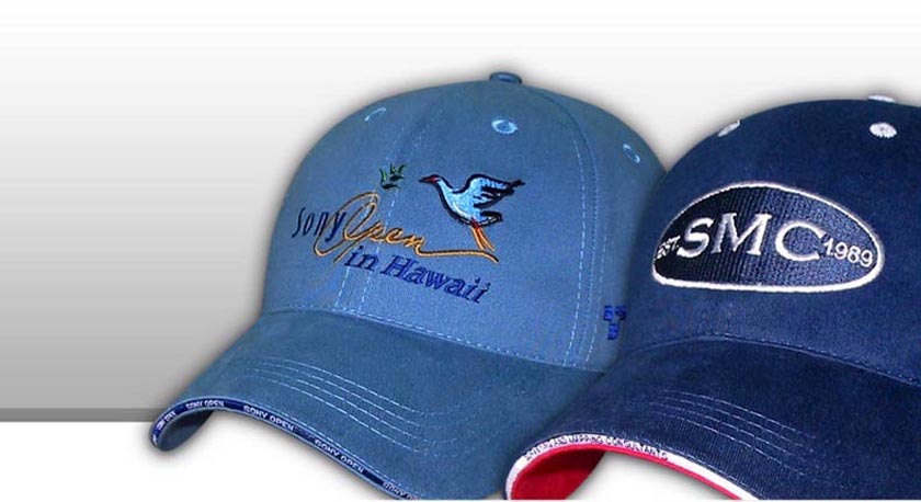 Woven sandwich labels are a great way to customize a cap. This is usually done for text or simple design like the American flag because of the space limitations. The text can be centered in the front or go from one side of the visor to the other side. Woven labels may be applied to any location including on the velcro fastener, hanged over the back opening or on the front of the cap if the logo has small details that can not be reproduced by embroidery.
